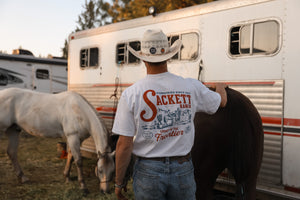 This past weekend, the Sackett Ranch crew saddled up for the Sisters Rodeo, with cameras in hand and ready to rodeo! We weren’t just spectators—we were there to capture the raw, dusty action through our lenses, cheering on our sponsored athlete as he took on the arena with grit and determination. Between snapping photos, we networked with fellow rodeo enthusiasts, handed out branded koozies to spread the Sackett spirit, and soaked in the good times.