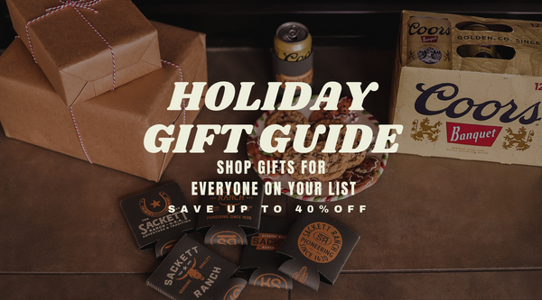 This year, we honor that very same heritage with small-batch, USA-made gifts built to last a lifetime—timeless western tees, rugged gear, and hearth-warming home goods that carry forward the magic of Moore’s words and our 400-year Sackett story.