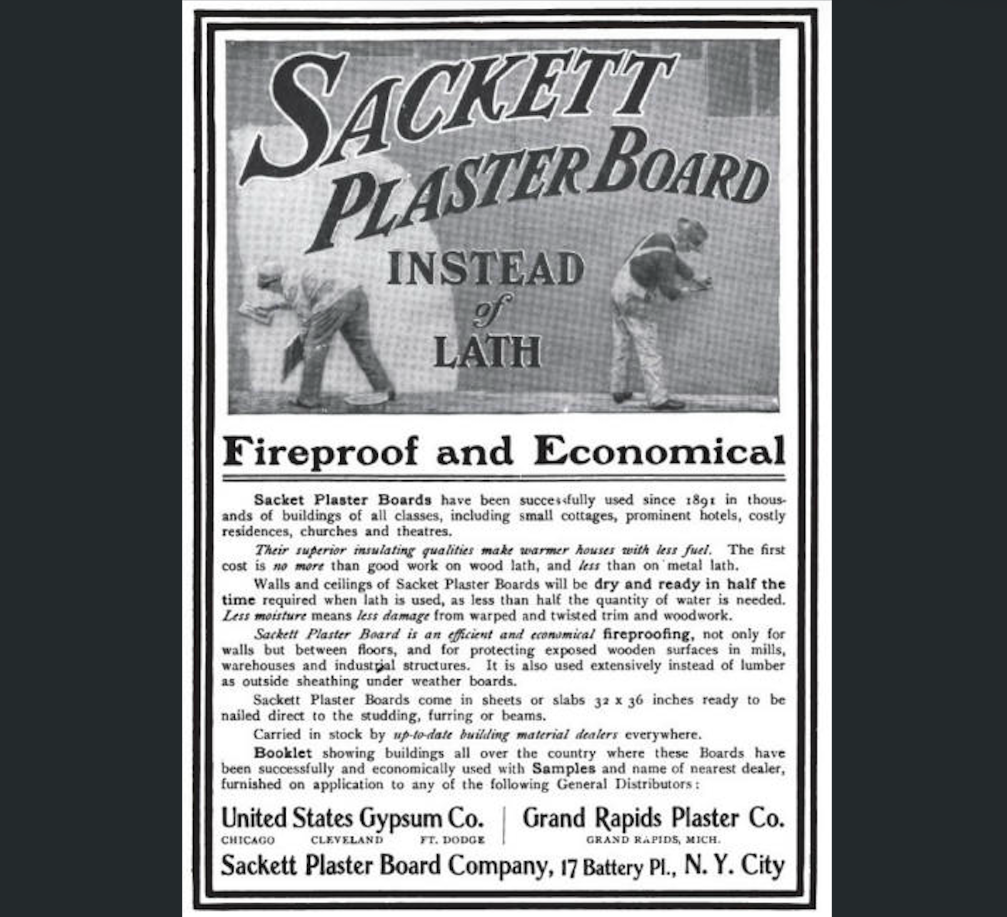 Augustine Sackett (1841-1914) pioneered Sackett Board, an early version of modern drywall that revolutionized home construction across America. His invention made homes more durable, efficient, and accessible — a testament to the Sackett family's ongoing drive to build better.