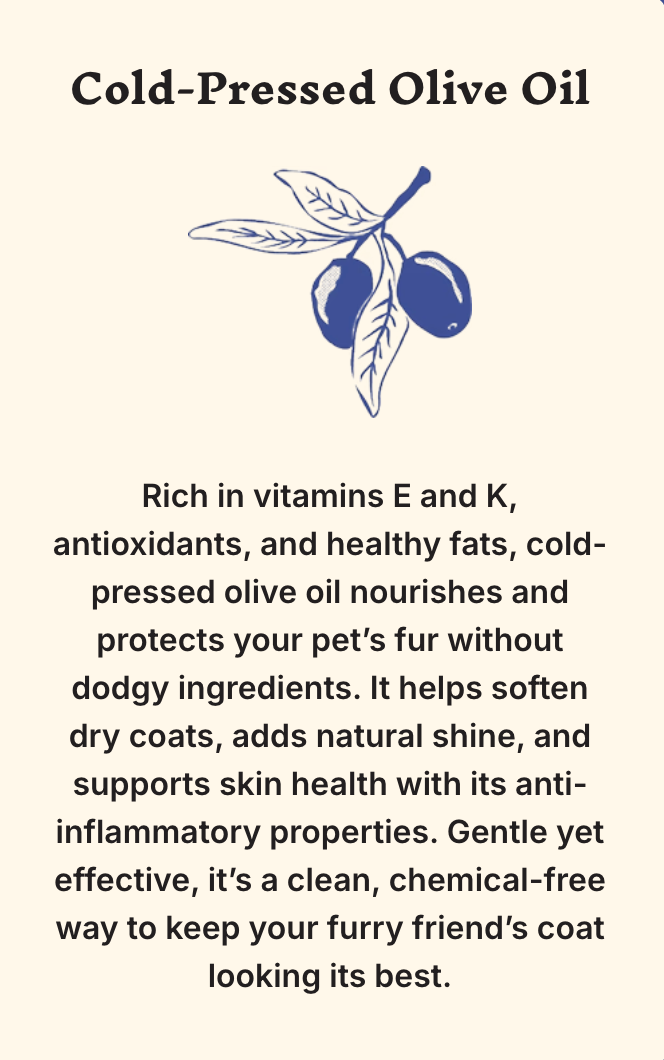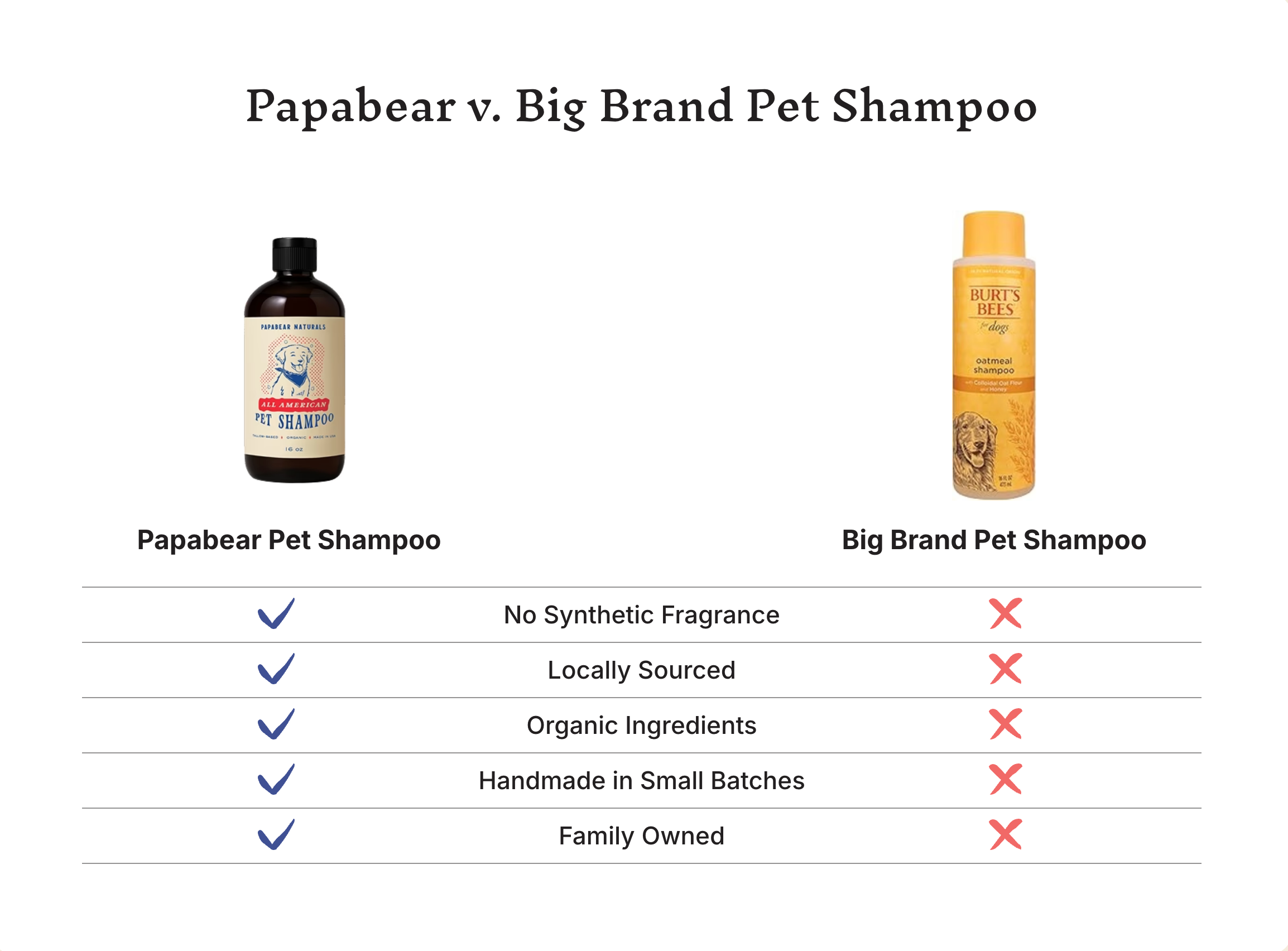 We do things differently. Papabear’s Pet Shampoo is rich in real ingredients your pet’s skin actually needs. Grass-fed tallow provides essential fatty acids and fat-soluble vitamins like A, D, and E—key nutrients that nourish skin and soften coats. Soothing botanicals like aloe and calendula help calm irritation and lock in moisture naturally. No harsh chemicals. No fillers. Just a gentle, nutrient-dense wash that leaves your pet’s skin resilient and their coat healthy, glossy, and happy.