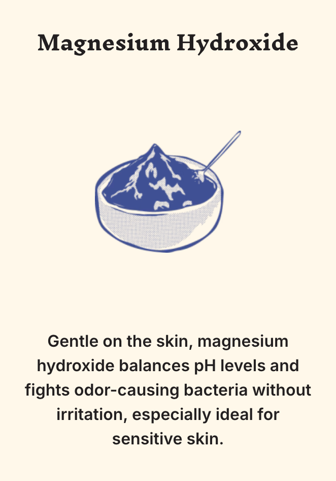Experience superior odor control: Long-lasting freshness with natural odor neutralizers like magnesium hydroxide and naturally mined baking soda. Enhance your skin health with soothing non-nano zinc oxide and kaolin clay, without clogging pores. Crafted with organic ingredients, free from aluminum, seed oils, parabens, and synthetic fragrances.