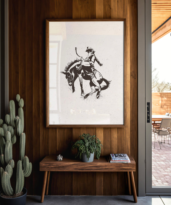 This modern bucking bronco print is #3 in a series of 3. Perfect for any western, southwestern, or boho space, this print also makes a great addition to your boho gallery wall. Also makes a great gift for a cowboy or horse lover in your life! Inspired by the fearless bronco riders of the rodeo, this graphic poster will be sure to add a bold touch to your wall.