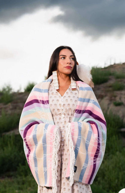 A beautiful blend of art and Indigenous heritage. Our Seasons Collection is a collaboration with multi-award-winning artist and fashion designer Lauren Good Day, also known as "Good Day Woman." Drawing from her Arikara, Hidatsa, Blackfeet, and Plains Cree roots, Lauren's work intertwines tradition and modernity.