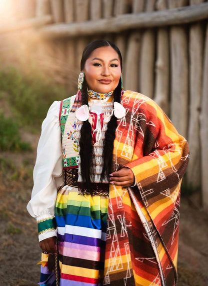 A beautiful blend of art and Indigenous heritage. Our Seasons Collection is a collaboration with multi-award-winning artist and fashion designer Lauren Good Day, also known as "Good Day Woman." Drawing from her Arikara, Hidatsa, Blackfeet, and Plains Cree roots, Lauren's work intertwines tradition and modernity.