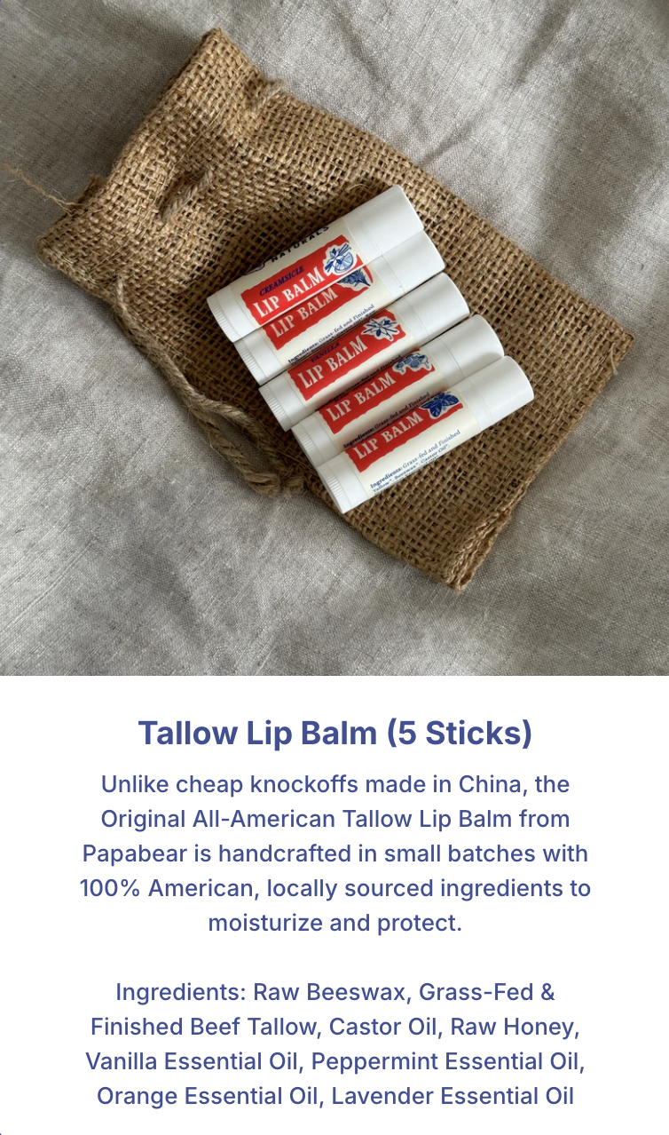 Mom deserves far better than Big Skincare. Give her a gift that keeps on giving—a six-month supply of nourishing self-care with our best-selling tallow products. No parabens. No SLS. No hormone-disrupting junk—ever. Just organic, clean ingredients that are locally sourced and handmade in the USA.