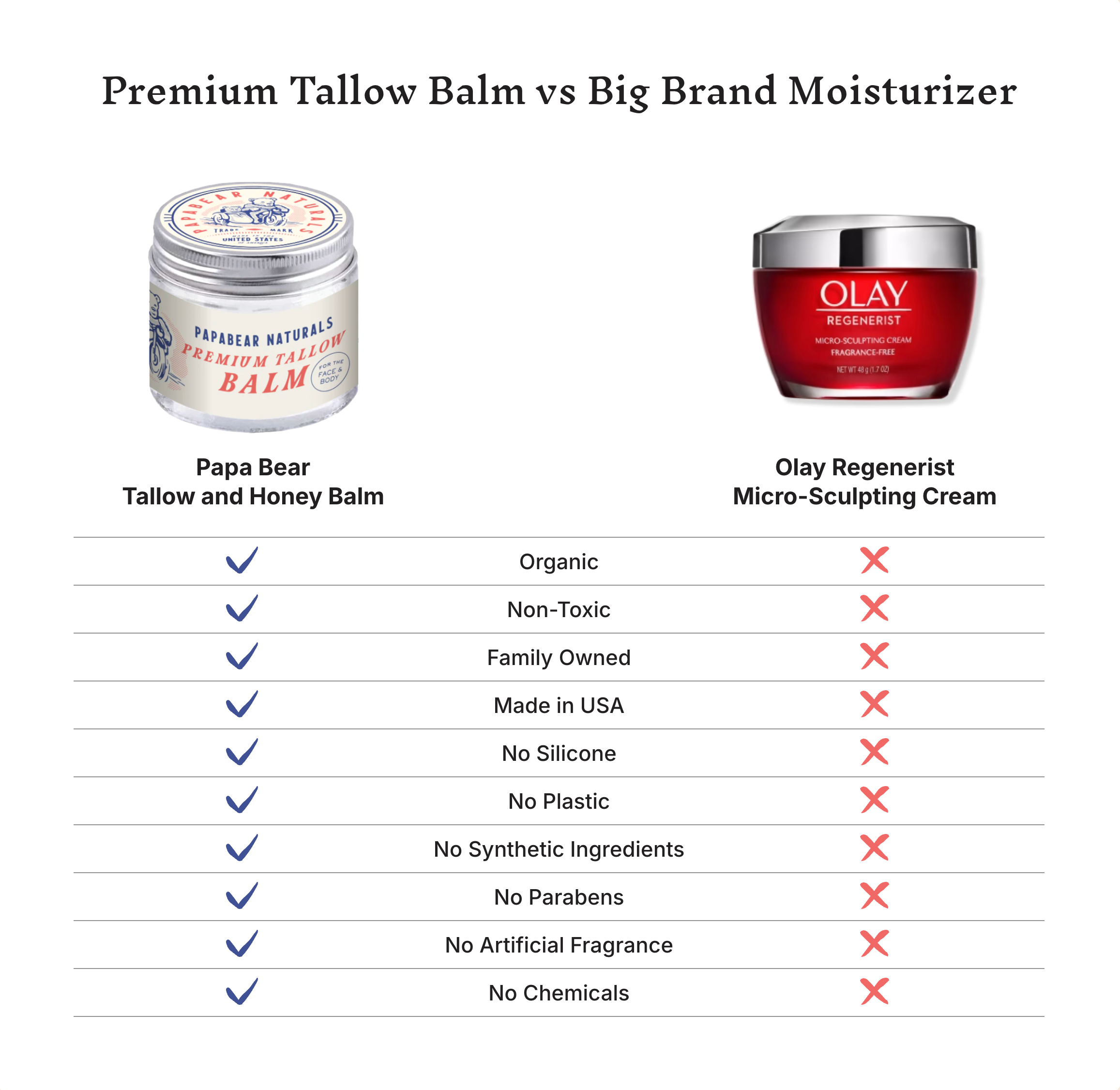 All Papabear Natural products are made with only the best of the best. Derived from all-natural ingredients, including organic grass-fed beef tallow, organic cold-pressed olive oil, and raw local beeswax. No green washing here, with a bunch of additives. These are the products our ancestors used before big corporations started adding chemicals to increase profits.