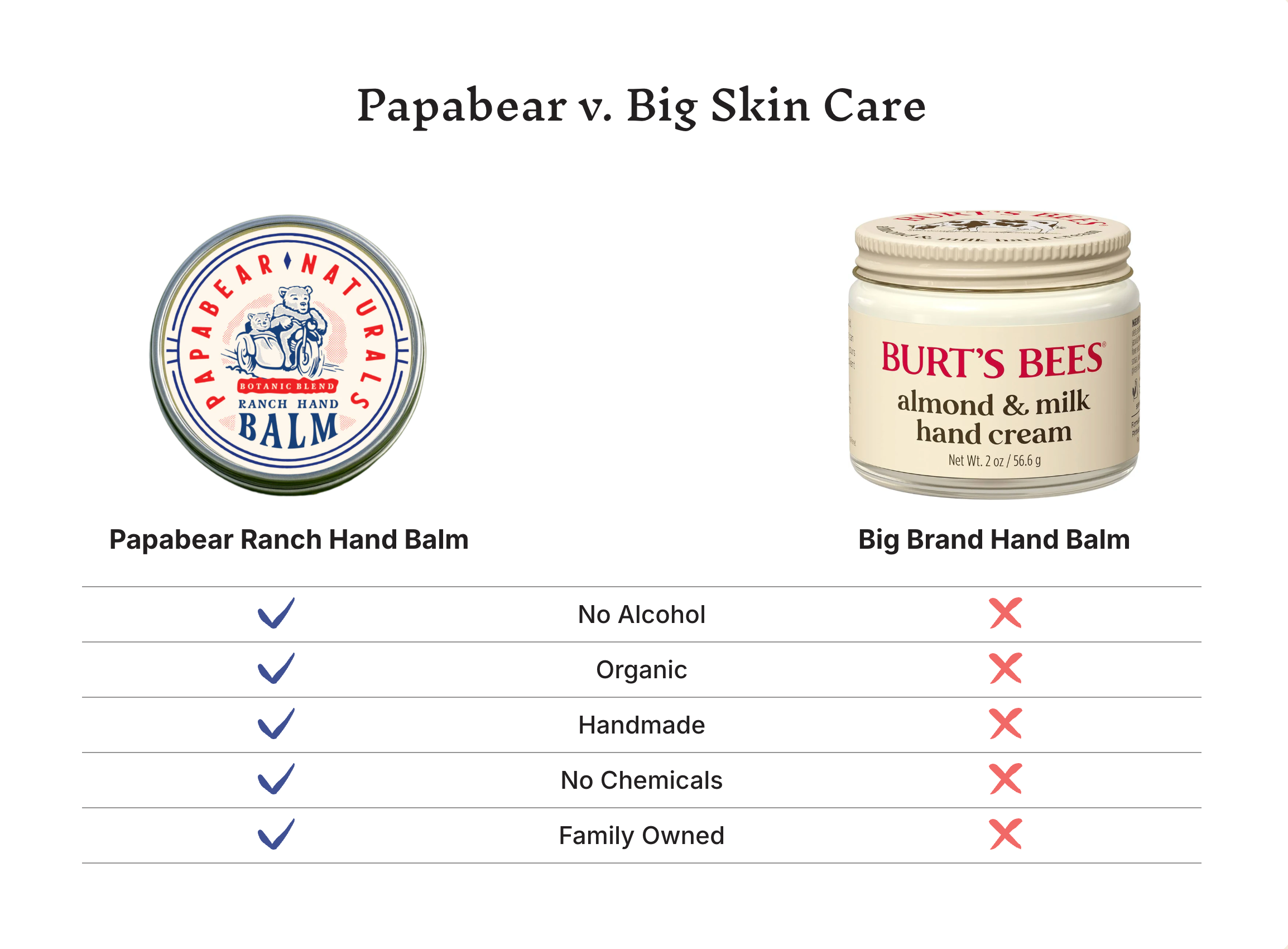 All Papabear Natural products are made with only the best of the best. Derived from all-natural ingredients, including organic grass-fed beef tallow, organic cold-pressed olive oil, and raw local beeswax. No green washing here, with a bunch of additives. These are the products our ancestors used before big corporations started adding chemicals to increase profits.
