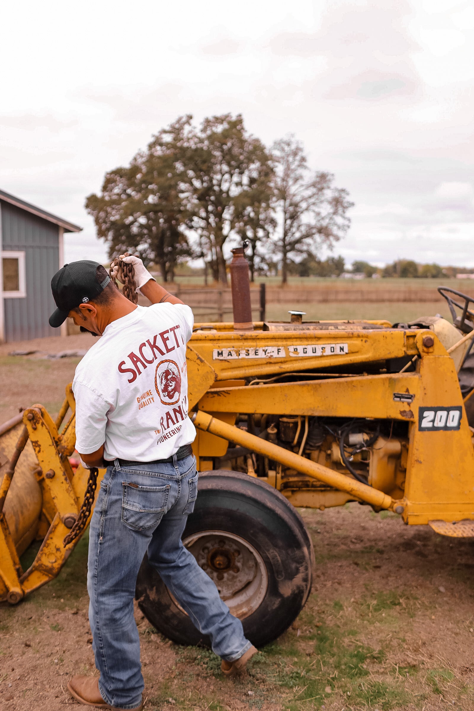 This Sackett Ranch Original product is 100% proudly made here in the USA. No gimmicks. The cotton this shirt is made of was farmed here in the USA. The shirt was then woven and assembled here in the USA. Finally, we screen print them locally right here in Arizona. 100% supporting domestic resources, manufacturing, and jobs. We do this all while offering a competitive price point as well.
