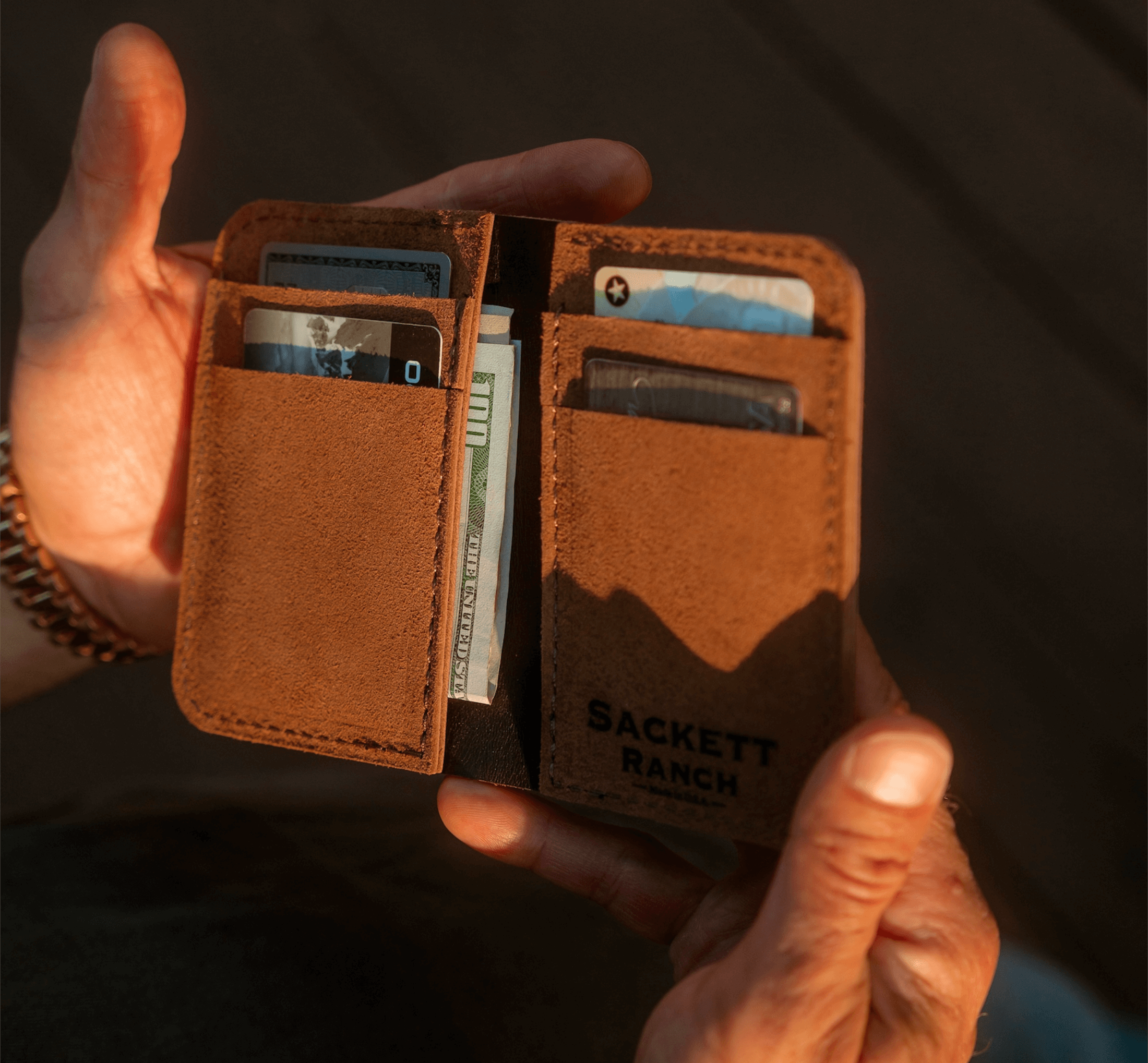 This Sackett Ranch Original product is 100% proudly made here in the USA. No gimmicks. The full grain leather comes from Horween Leather, the oldest operating tannery in the USA. This wallet is then hand crafted by our expert leather artisan. 100% supporting domestic resources, manufacturing, and jobs. We do this all while offering a competitive price point as well.
