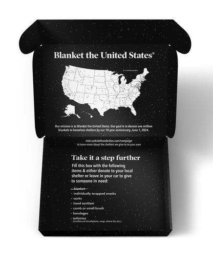 The first step to the making of our blankets is gathering donated clothing and factory scraps, saving fabric from the landfill. The recycled fabrics are then shredded into fibers in a water-free, chemical-free carding process. The fibers from carding are combined with fibers of different colors to create a unique palette without ever touching dye - and then is spun into yarn. The yarn is given new life and is woven into our blankets on a Jacquard loom. Once the fabric is woven, it is brushed and shaved to enhance softness. After the brushing process the warp yarn is twisted on both ends of the blanket to create our signature tassels. Lastly, each blanket is rigorously quality checked to ensure it is free of defects and flaws. Experience quality and craftsmanship in our blankets, proudly finished in the USA for an authentic touch.