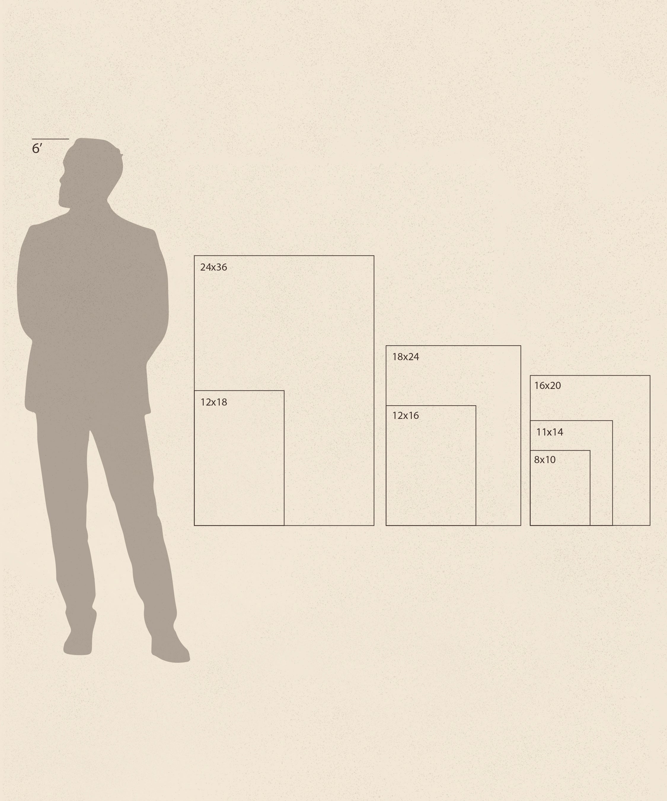 - The print size pictured in the first listing image is a 30"x44" with no mat.